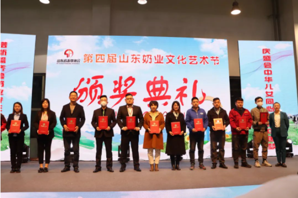 本次博覽會期間舉行了第四屆山東奶業(yè)文化藝術(shù)節(jié),由山東省畜牧協(xié)會、山東省社會組織聯(lián)合會主辦,活動現(xiàn)場對山東奶業(yè)先進(jìn)個人進(jìn)行了頒獎,山東健源生物科技有限公司董事長王誠榮獲“2022年度弘揚(yáng)齊魯奶業(yè)文化風(fēng)云人物”稱號,山東健源生物技術(shù)部總監(jiān)李燕、外宣部主任邢燭榮獲“2022年度最美奶業(yè)科技推廣先進(jìn)個人”稱號。