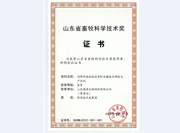 山東省畜牧科學(xué)技術(shù)獎(jiǎng)一等獎(jiǎng)