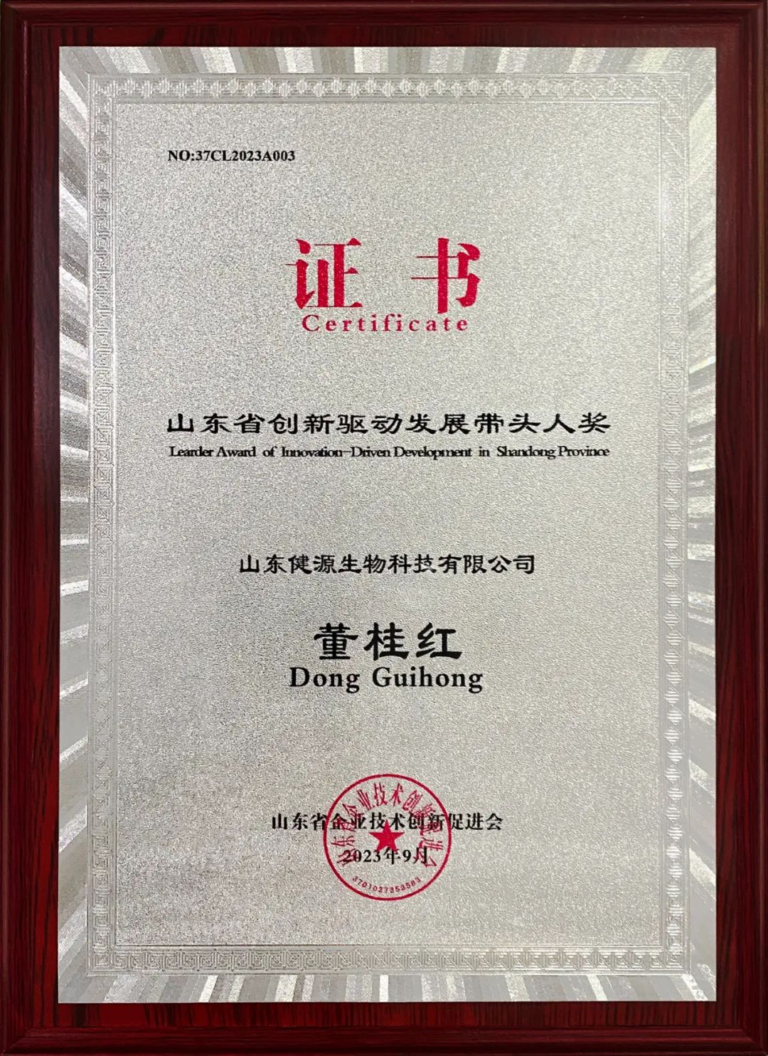 公司研發(fā)部負(fù)責(zé)人董桂紅榮獲山東省創(chuàng)新驅(qū)動(dòng)發(fā)展帶頭人獎(jiǎng)