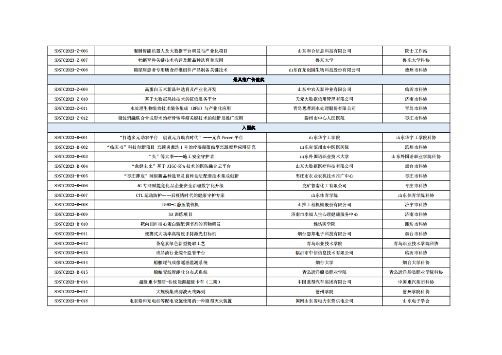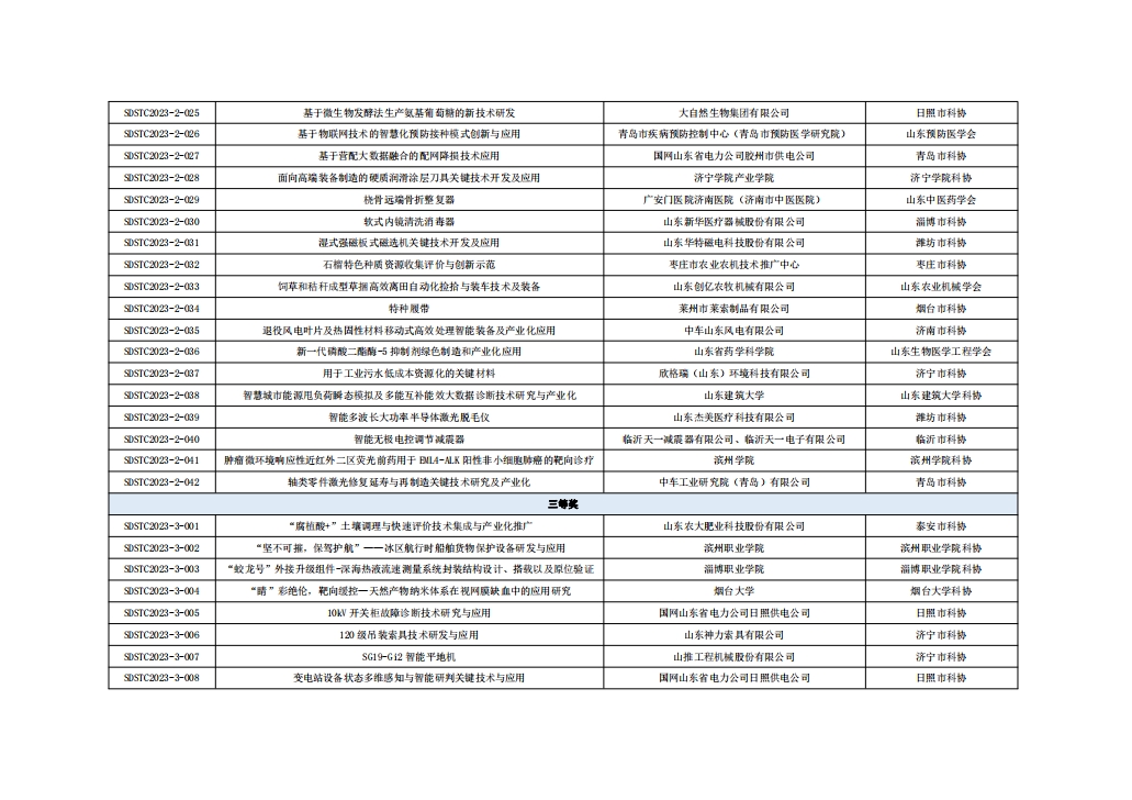 山東省第七屆科技工作者創(chuàng)新大賽獲獎(jiǎng)名單