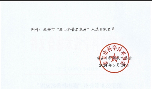 王誠董事長被市科協(xié)認定為泰安市“泰山科普名家”