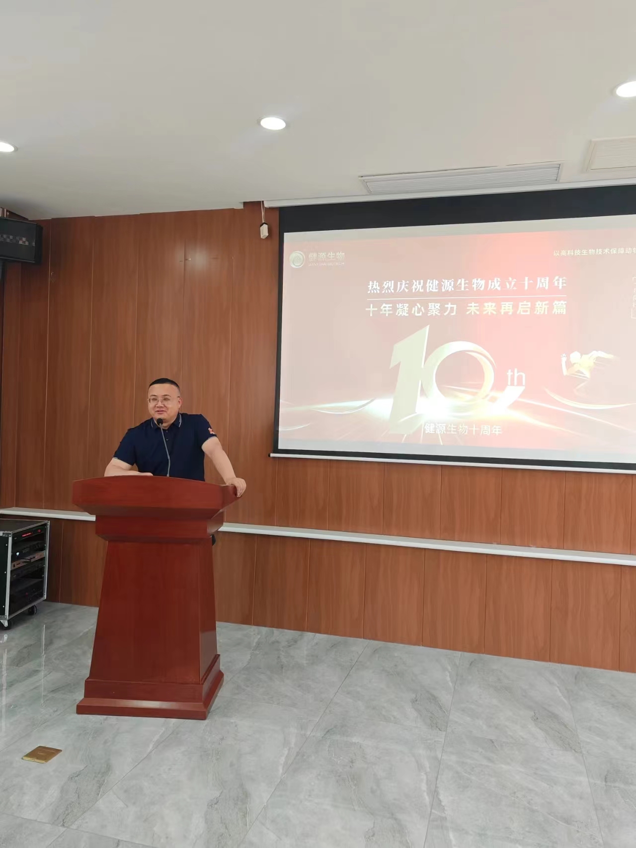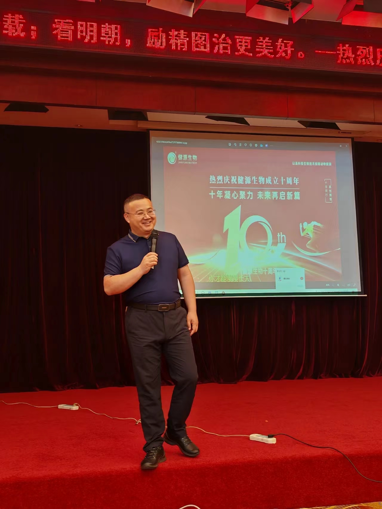王誠董事長在講話中指出,健源生物十年來,克服了無資金、無經(jīng)驗、無市場的創(chuàng)業(yè)困難,走出了一條他無我有、他有我優(yōu)、他優(yōu)我新的創(chuàng)新發(fā)展之路,實現(xiàn)了從無到有、從小到大、從弱到強的飛速發(fā)展。這一切離不開全體員工的緊密追隨,離不開客戶朋友的支持信任,離不開各級領(lǐng)導(dǎo)的關(guān)懷幫扶。健源生物將始終不忘初心牢記使命,堅守“誠實守信”的企業(yè)核心價值觀,打造生物科技新質(zhì)生產(chǎn)力,以高科技生物技術(shù)造福人類。