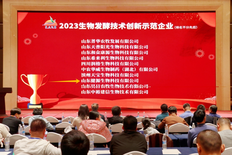 2023-12-13 健源生物榮獲“2023年生物發(fā)酵技術(shù)創(chuàng)新示范企業(yè)”稱號(hào)