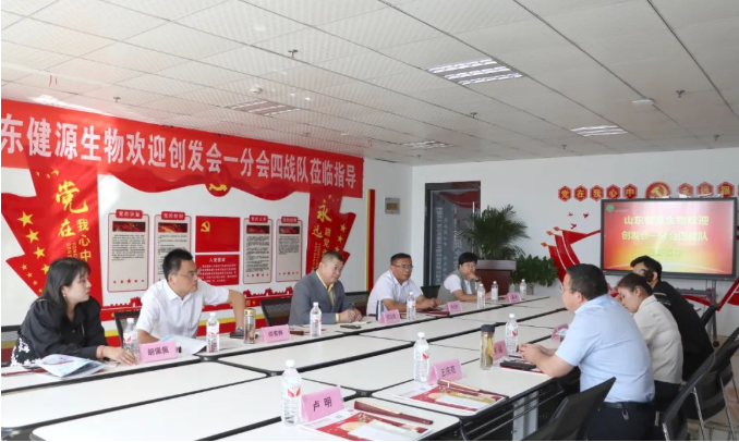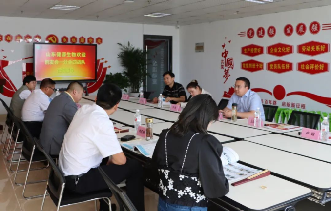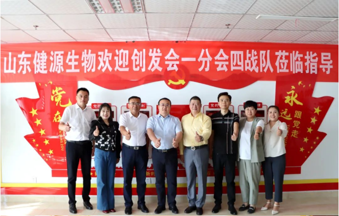 2022年9月23日,泰安市企業(yè)家創(chuàng)新發(fā)展協(xié)會一分隊四戰(zhàn)隊在總會常務(wù)副會長何玉強,一分會會長周光榮、副會長姜璐,一分會四戰(zhàn)隊隊長尚安林、秘書長胡佩佩帶領(lǐng)下,專程來到山東健源生物科技有限公司參觀指導(dǎo),山東健源生物董事長王誠等相關(guān)部門負責(zé)人熱情接待并陪同參觀。