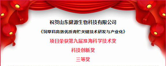 祝賀山東健源生物榮獲淮?茖W(xué)技術(shù)獎(jiǎng)科技創(chuàng)新獎(jiǎng)三等獎(jiǎng)