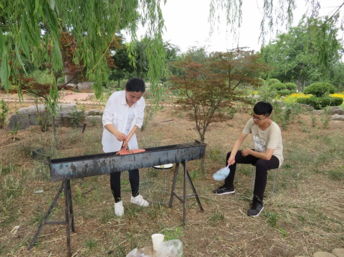 燒烤過程中女同學(xué)互相配合著串肉,男同學(xué)則忙著生火、加炭,場面熱鬧。大家都拿出了“十八般武藝”,展示出自己的動手能力和美食鑒賞能力,每個人笑容滿面,洋溢著喜悅的氣氛。