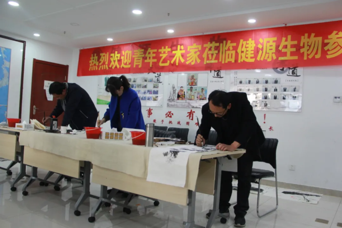 公司精心為藝術(shù)家準(zhǔn)備了書畫室,藝術(shù)家們現(xiàn)場(chǎng)揮毫潑墨,進(jìn)行藝術(shù)創(chuàng)作。在和諧友好的文化氛圍中提筆作字,鋪紙作畫,與健源文化結(jié)緣,與健源生物結(jié)緣,創(chuàng)作出一幅幅精妙的藝術(shù)作品。