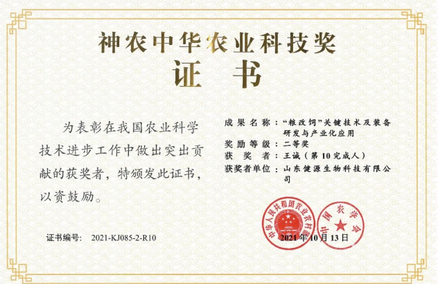 祝賀山東健源生物及王誠(chéng)董事長(zhǎng)榮獲神農(nóng)中華農(nóng)業(yè)科技獎(jiǎng)科學(xué)研究類成果“二等獎(jiǎng)”