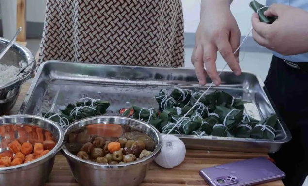 與村民共同包粽子迎端午,綠色的粽葉在大家手中上下舞動(dòng),清香的葦葉包裹真意,點(diǎn)綴一顆甜甜的真心,用長(zhǎng)長(zhǎng)的棉線牢牢捆住真情。