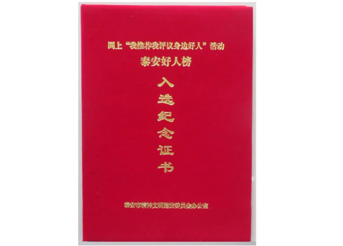 一、王誠董事長光榮入選五月“泰安好人榜”——由泰安市精神文明建設委員會頒發(fā)