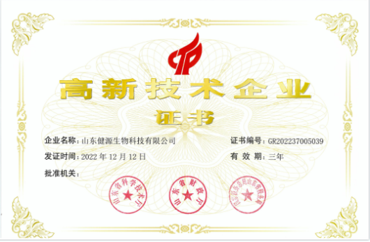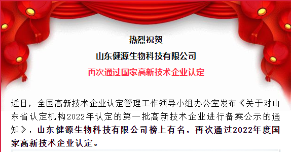 祝賀山東健源生物再次通過國家高新技術(shù)企業(yè)認(rèn)定