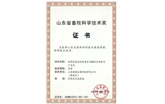 山東健源生物榮獲山東省畜牧科學(xué)技術(shù)獎一等獎