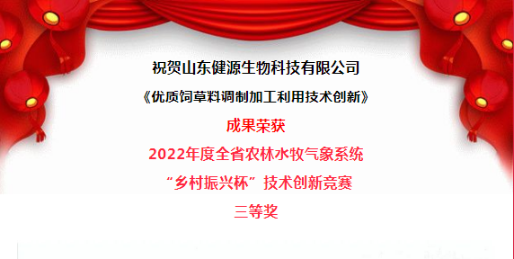 山東健源生物榮獲2022年度全省農(nóng)林水牧氣象系統(tǒng)“鄉(xiāng)村振興杯”技術(shù)創(chuàng)新競賽三等獎