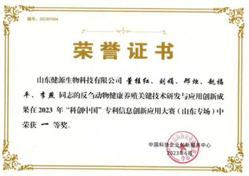 山東健源生物科技有限公司《反芻動物健康養(yǎng)殖關鍵技術研發(fā)與應用》項目榮獲2023年科創(chuàng)中國專利信息創(chuàng)新應用大賽(山東專場)一等獎