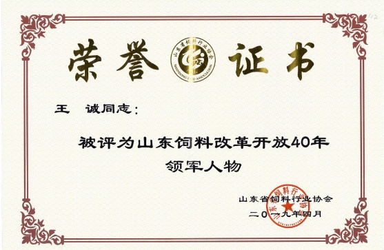 山東健源生物董事長王誠榮獲山東飼料改革開放40年領(lǐng)軍人物