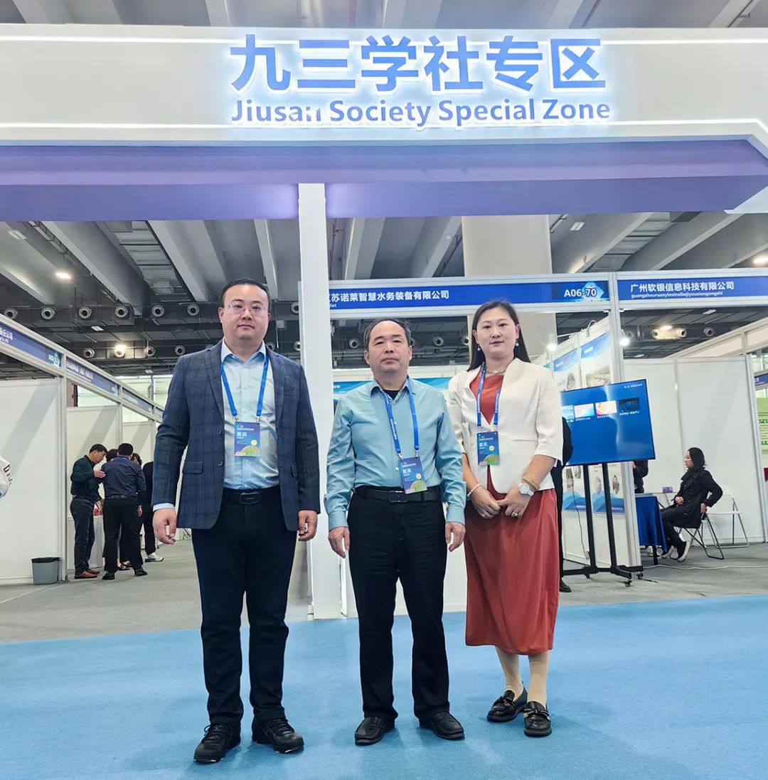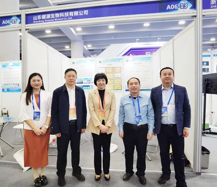 九三學(xué)社中央社會服務(wù)部副部長蔣承華,山東省政協(xié)副秘書長、九三學(xué)社山東省委會專職副主委李宗濤蒞臨健源生物展位指導(dǎo)工作