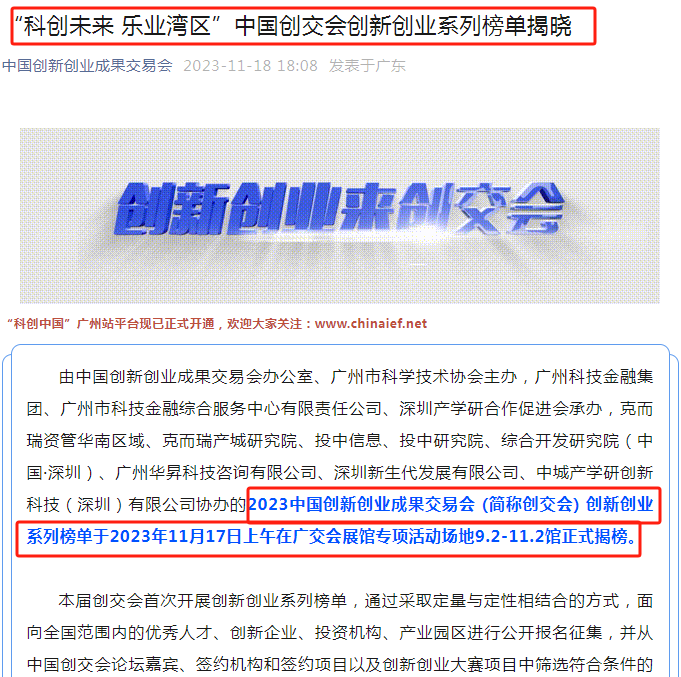 11月18日,中國創(chuàng)新創(chuàng)業(yè)成果交易會公眾號公示系列榜單TOP10.