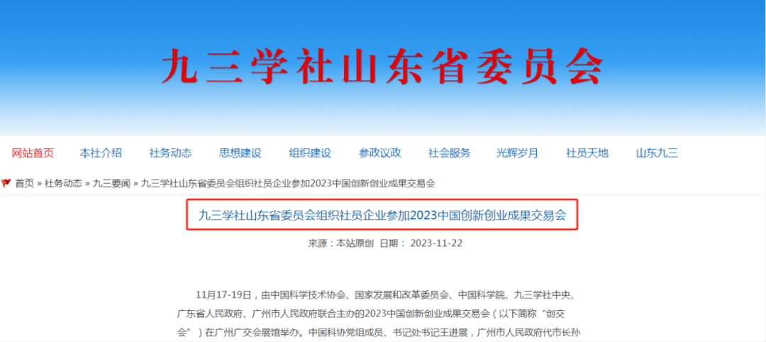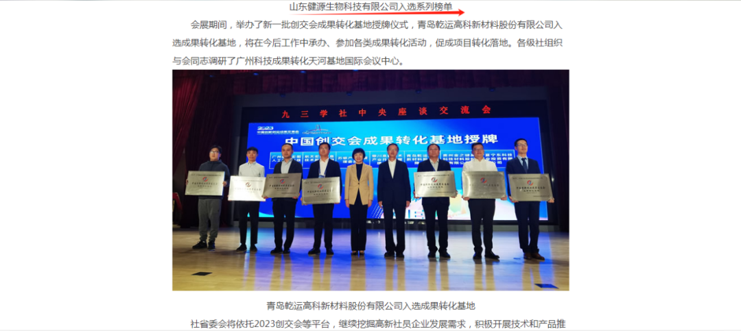 山東健源生物科技有限公司在此次創(chuàng)交會上的優(yōu)異表現(xiàn)也獲得了九三學(xué)社各級委員會的關(guān)注和報道。