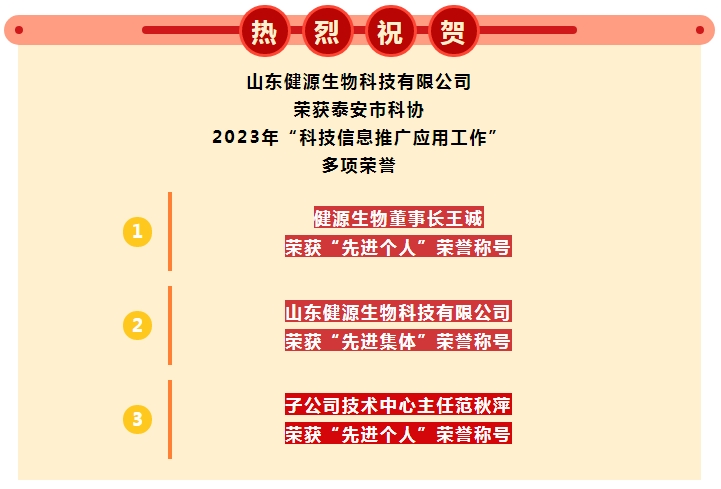 健源生物榮獲泰安市科協(xié)多項(xiàng)榮譽(yù)