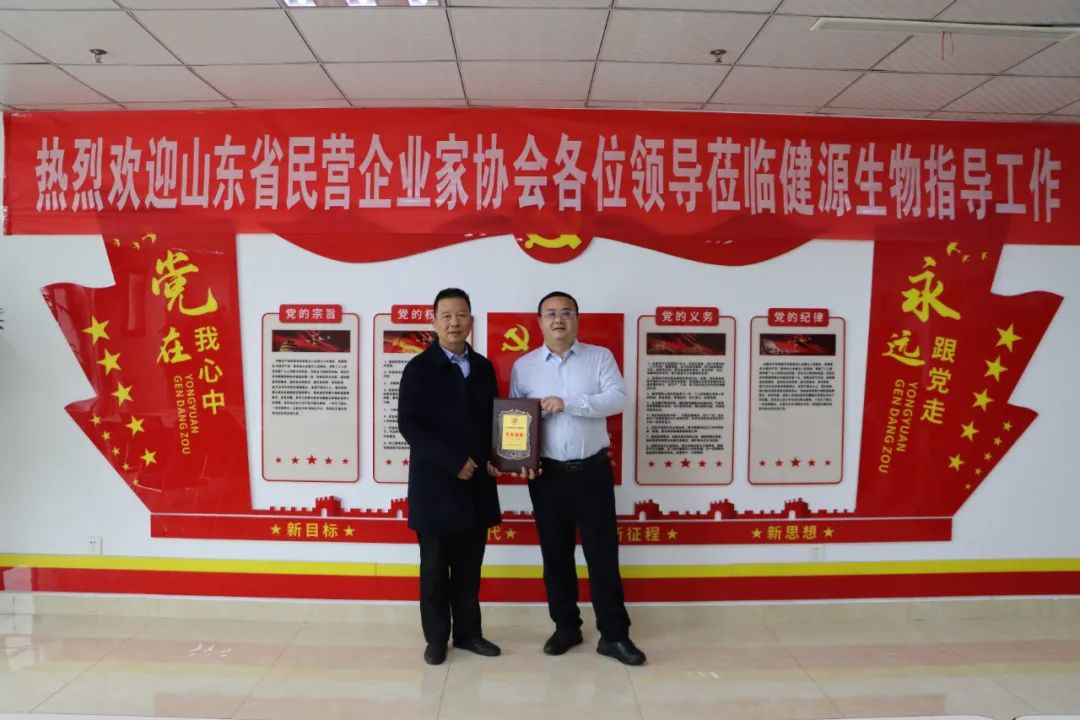 2024年1月17日,山東省民營(yíng)企業(yè)家協(xié)會(huì)秘書長(zhǎng)李吉祥,協(xié)會(huì)黨支部書記、副秘書長(zhǎng)孫力,協(xié)會(huì)秘書處主任彭亞玲,協(xié)會(huì)秘書處副主任柳川蒞臨公司調(diào)研工作,并為健源生物頒發(fā)獎(jiǎng)牌和證書。