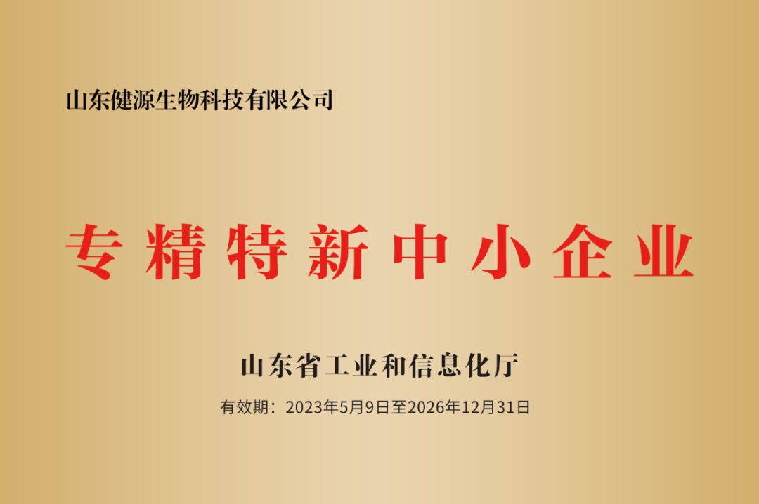 2023年5月,健源生物被認(rèn)定為2023年度專精特新中小企業(yè)