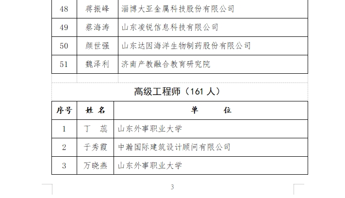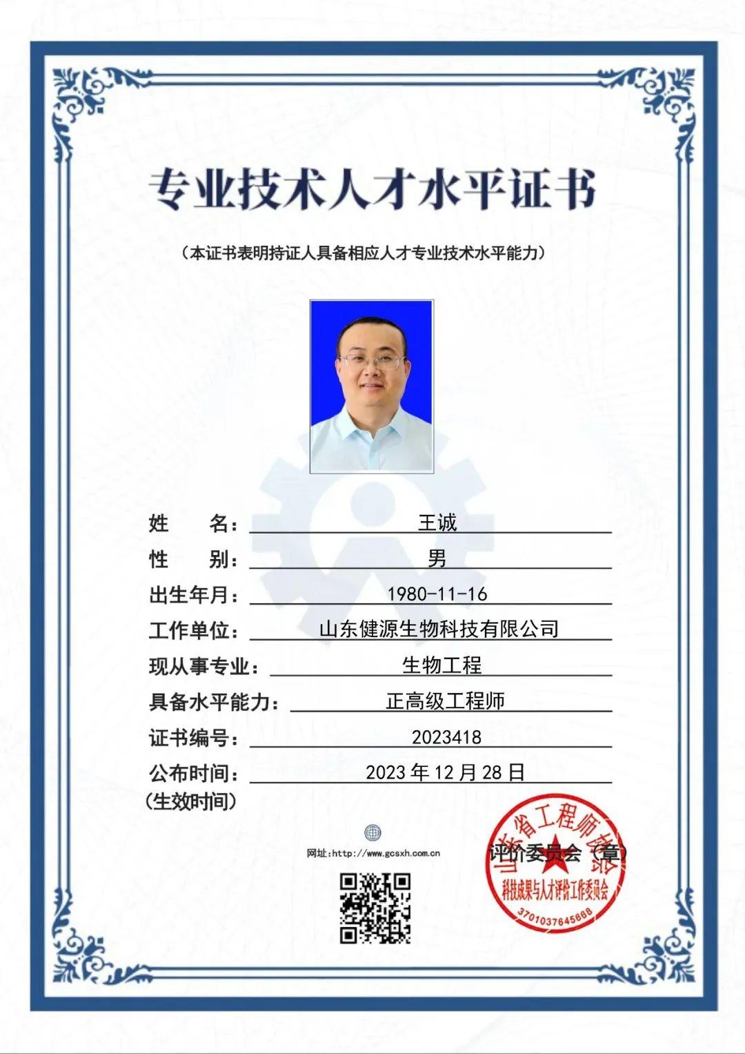 根據(jù)《山東省工程師協(xié)會人才評價實施意見(試行)》和《山東省工程師協(xié)會人才評價試行標準》,經(jīng)資格審查和專家評審通過,共有51人具備正高級工程師資格、161人具備高級工程師資格,154人具備工程師資格,53人具備助理工程師資格。山東健源生物科技有限公司董事長王誠獲評正高級工程師資格。