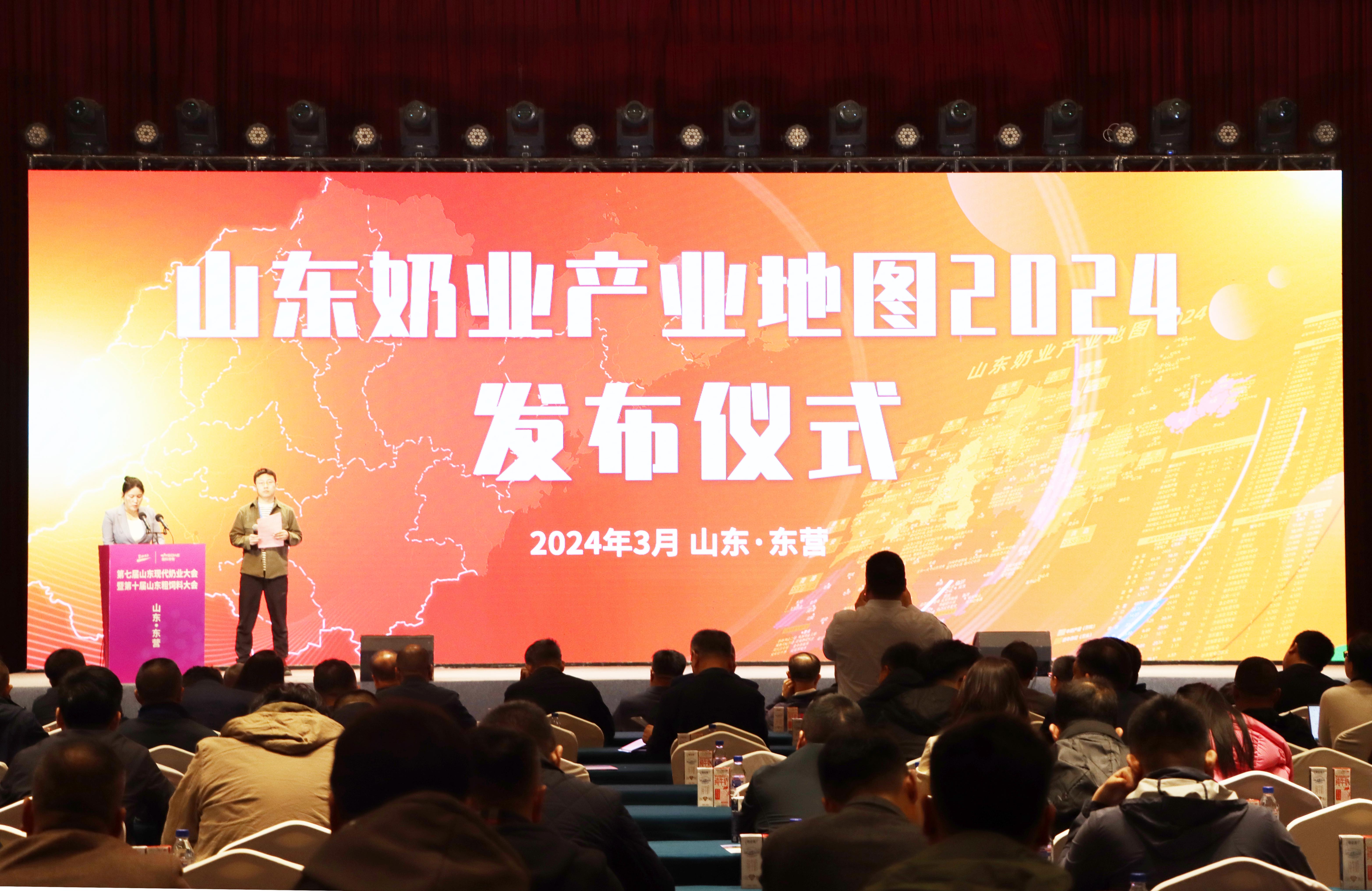 大會開幕式后,由山東省奶業(yè)協(xié)會和山東省畜牧協(xié)會編制、荷斯坦雜志設(shè)計(jì)制作的《山東省奶業(yè)產(chǎn)業(yè)地圖2024》發(fā)布儀式舉行。全國畜牧總站原總畜牧師石有龍、中國奶業(yè)協(xié)會副秘書長邵明君、山東省畜牧獸醫(yī)局副局長李新、東營市現(xiàn)代畜牧業(yè)發(fā)展服務(wù)中心主任劉志強(qiáng),山東省牧草產(chǎn)業(yè)技術(shù)體系首席專家楊國鋒,山東省奶業(yè)協(xié)會會長王成武、荷斯坦傳媒總編豆明,山東視界牧業(yè)場長高立國、青島新希望琴牌乳業(yè)奶源總監(jiān)王昌亮、中地乳業(yè)集團(tuán)副總裁何舉、意美特總監(jiān)張娟共同登臺啟動地圖發(fā)布。