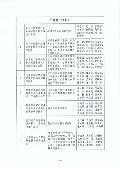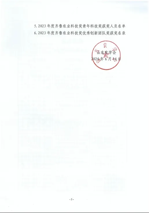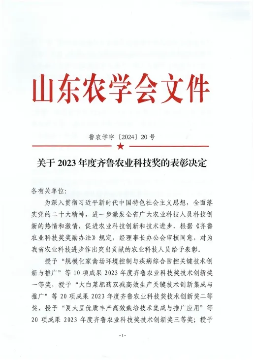 齊魯農(nóng)業(yè)科技獎是山東農(nóng)學(xué)會設(shè)立的面向全省農(nóng)業(yè)行業(yè)的綜合性科學(xué)技術(shù)獎,主要獎勵為全省農(nóng)業(yè)科學(xué)技術(shù)進(jìn)步和創(chuàng)新作出突出貢獻(xiàn)的集體和個人,對于調(diào)動廣大農(nóng)業(yè)科技工作者的積極性和創(chuàng)造性,促進(jìn)我省農(nóng)業(yè)科技創(chuàng)新,不斷提升產(chǎn)業(yè)發(fā)展水平起到了積極的推動作用。