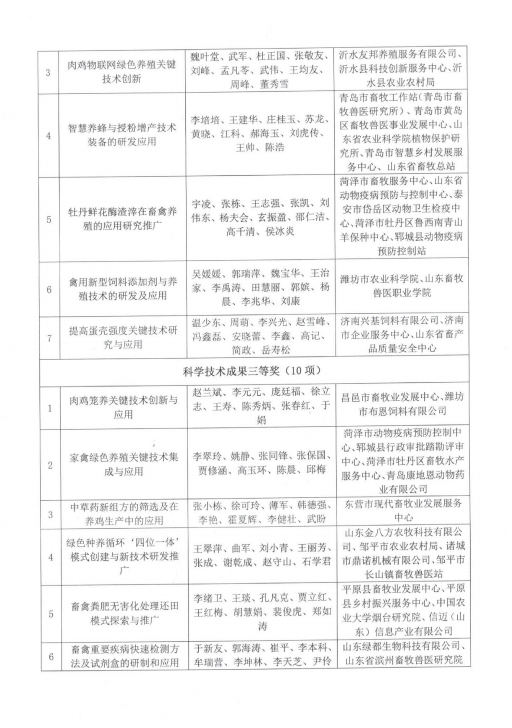 按照《山東省畜牧科學(xué)技術(shù)獎(jiǎng)獎(jiǎng)勵(lì)管理辦法》的規(guī)定,為表彰獎(jiǎng)勵(lì)在我省畜牧技術(shù)科技研發(fā)和推廣中作出貢獻(xiàn)的單位和個(gè)人,經(jīng)過(guò)評(píng)審,評(píng)選出山東省畜牧科學(xué)技術(shù)獎(jiǎng)技術(shù)成果獎(jiǎng)一等獎(jiǎng)5個(gè),二等獎(jiǎng)7個(gè),三等獎(jiǎng)10個(gè)。