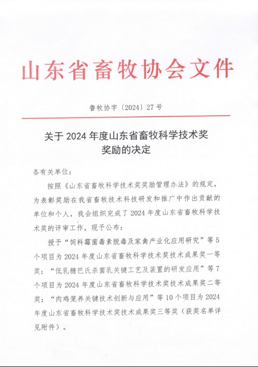 健源生物榮獲山東省畜牧科學(xué)技術(shù)獎(jiǎng)科學(xué)技術(shù)成果獎(jiǎng)一等獎(jiǎng)
