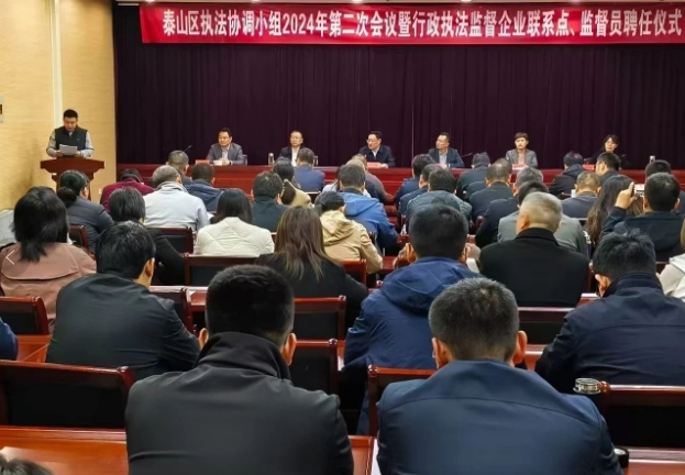 發(fā)布時間:[2024-10-26 17:27:23] 瀏覽量:2760次10月22日,泰山區(qū)舉行區(qū)委全面依法治區(qū)委員會執(zhí)法協(xié)調(diào)小組第二次會議暨行政執(zhí)法監(jiān)督企業(yè)聯(lián)系點、行政執(zhí)法監(jiān)督員聘任儀式。泰安市司法局黨委委員、四級調(diào)研員張昊寧到會并講話,泰山區(qū)委常委、區(qū)委政法委書記吳杰主持會議,各街道(鄉(xiāng)鎮(zhèn))、區(qū)直執(zhí)法部門分工負(fù)責(zé)同志,行政執(zhí)法監(jiān)督員、行政執(zhí)法監(jiān)督企業(yè)聯(lián)系點代表參加會議。