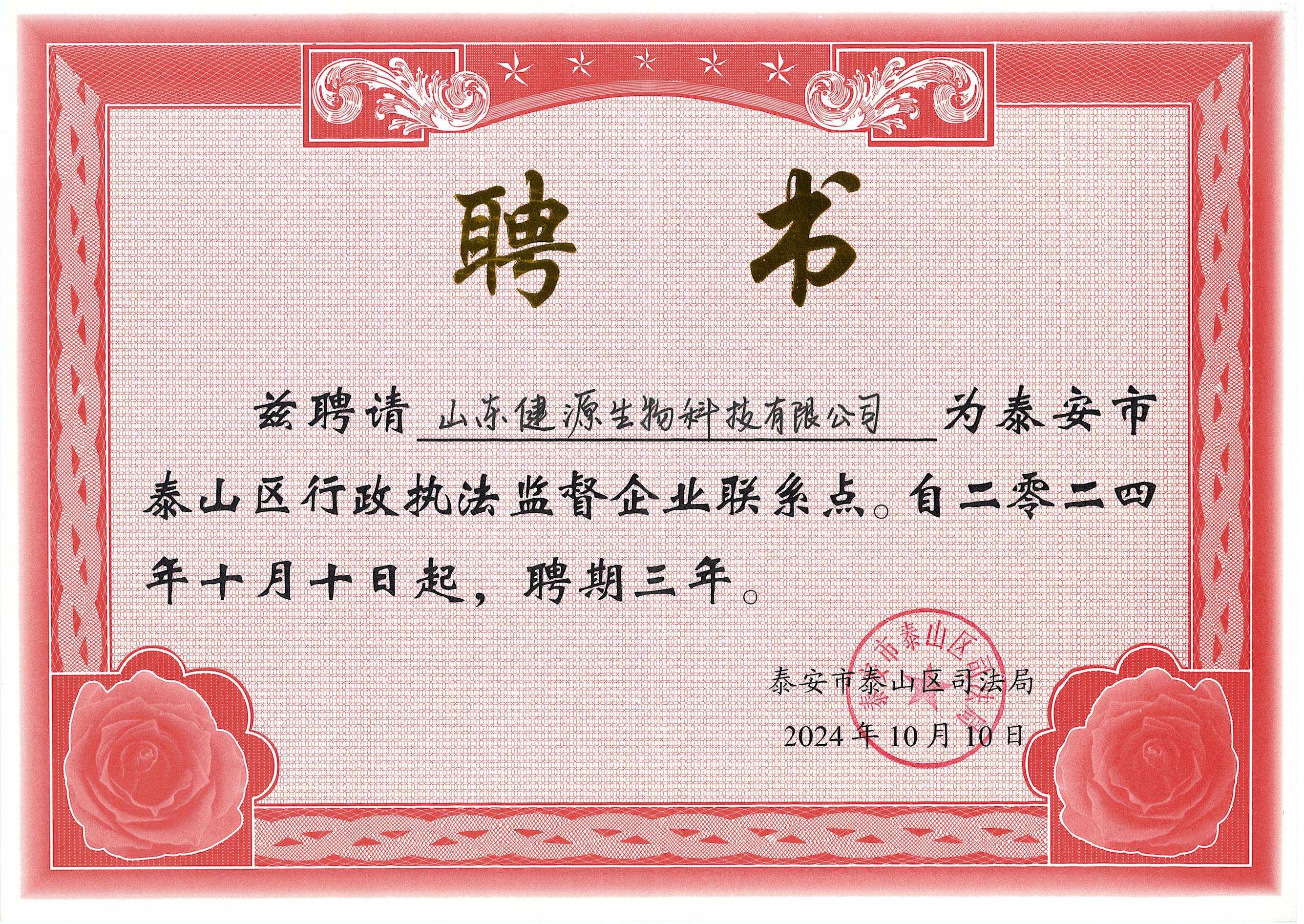 健源生物被設(shè)為泰山區(qū)行政執(zhí)法監(jiān)督企業(yè)聯(lián)系點