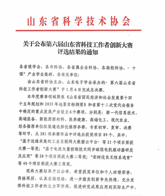由山東省科協(xié)主辦,山東電子學(xué)會(huì)承辦的"第六屆山東省科技工作者創(chuàng)新大賽”1月6日完成總決賽。本年...