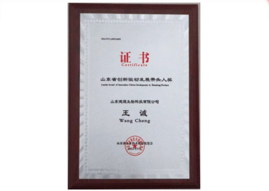 2022-10-5 山東健源生物董事長王誠榮獲山東省創(chuàng)新驅(qū)動(dòng)發(fā)展帶頭人獎(jiǎng)