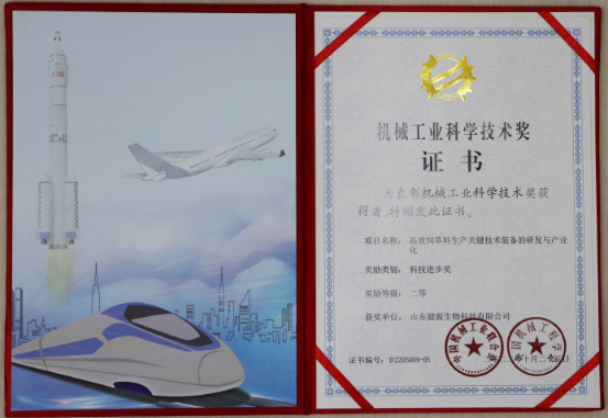 祝賀山東健源生物參與完成的《高效飼草料生產(chǎn)關(guān)鍵技術(shù)裝備的研發(fā)與產(chǎn)業(yè)化》項(xiàng)目榮獲2022年度機(jī)械工業(yè)...