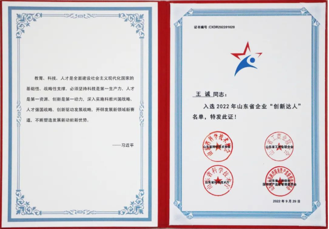 2022-11-24 祝賀山東健源生物董事長王誠榮獲2022年山東省企業(yè)“創(chuàng)新達(dá)人”稱號(hào)