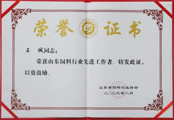 2023-9-2 山東健源生物董事長王誠榮獲2023山東飼料行業(yè)先進(jìn)工作者