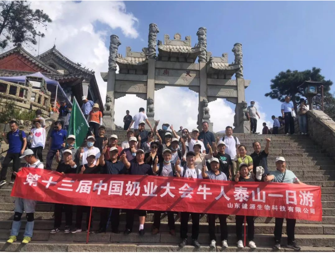 2022年9月6日,在第十三屆奶業(yè)大會、2022奶業(yè)D20峰會暨2022奶業(yè)展覽會期間,山東健源生物科技有限公司為感恩回饋各地牛人朋友對公司的支持和信任,公司精心安排了登泰山活動,登高望遠,為奶業(yè)加油!