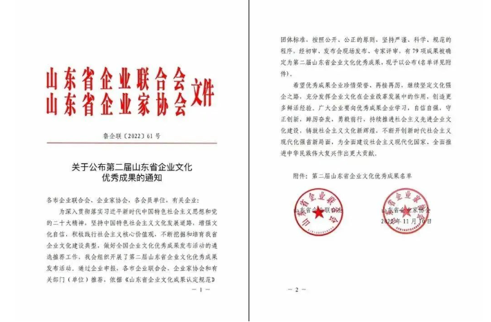 深入貫徹落實習(xí)近平新時代中國特色社會主義思想和黨的二十大精神,堅持中國特色社會主義文化發(fā)展道路,增強文化自信,積極踐行社會主義核心價值觀,不斷挖掘和培育我省企業(yè)文化建設(shè)典型,做好全國企業(yè)文化優(yōu)秀成果發(fā)布活動的遴選推薦工作。山東省企業(yè)聯(lián)合會、山東省企業(yè)家協(xié)會聯(lián)合開展了第二屆山東省企業(yè)文化優(yōu)秀成果發(fā)布活動。通過企業(yè)申報,各市企業(yè)聯(lián)合會、企業(yè)家協(xié)會和有關(guān)部門(單位)推薦,依據(jù)《山東省企業(yè)文化成果認定規(guī)范》團體標準,按照公開、公正的原則,堅持嚴謹、科學(xué)、規(guī)范的程序,經(jīng)初審、發(fā)布會現(xiàn)場發(fā)布、專家評審,有79項成果被確定為山東省企業(yè)文化優(yōu)秀成果,山東健源生物科技有限公司《“誠”辦良心企業(yè),企業(yè)文化推動科技創(chuàng)新》企業(yè)文化成果榮獲第二屆山東省企業(yè)文化優(yōu)秀成果二等獎。