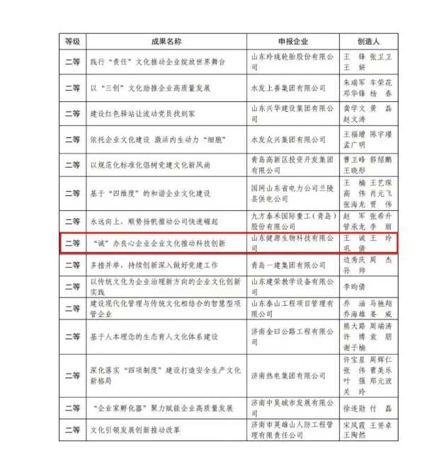 健源生物榮獲第二屆山東省企業(yè)文化優(yōu)秀成果二等獎