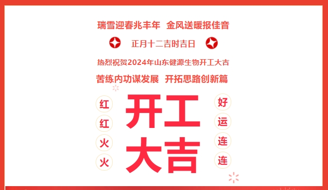 苦練內(nèi)功謀發(fā)展,開拓思路創(chuàng)新篇!嶄新的2024已經(jīng)拉開帷幕,2024年2月21日(農(nóng)歷正月十二),健源生物全體員工歡聚一堂,隆重舉行2024年山東健源生物科技有限公司開工典禮。